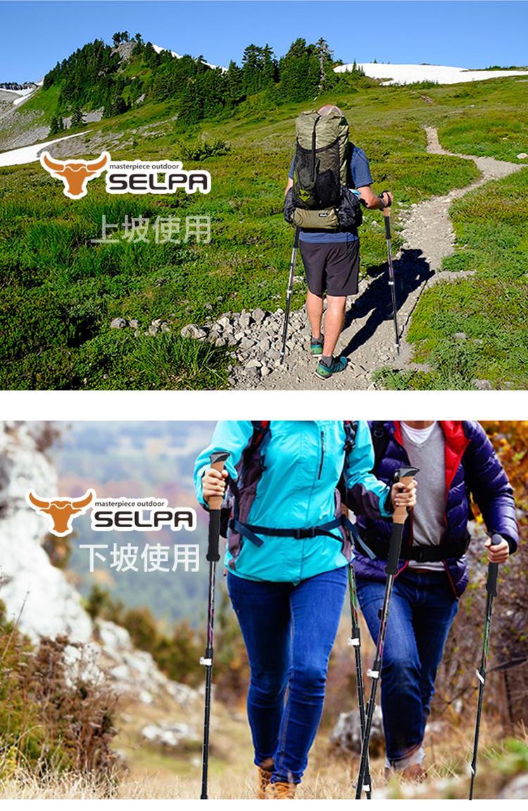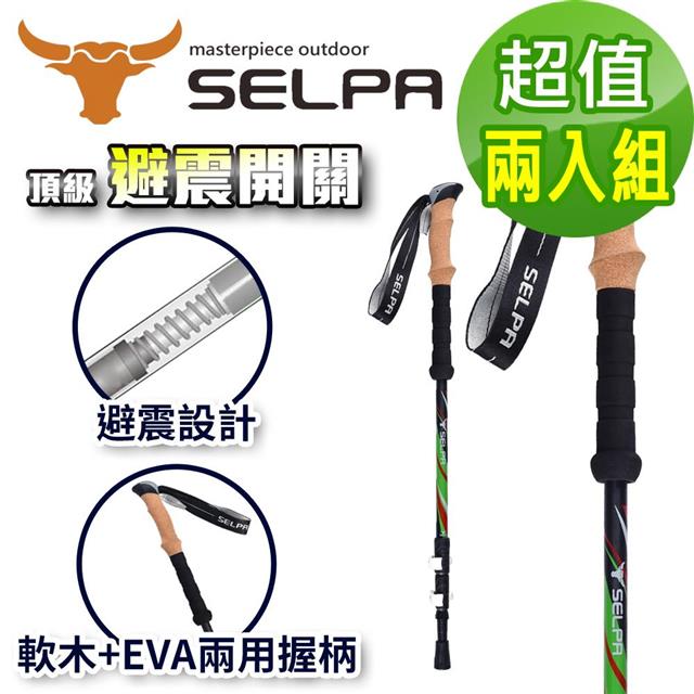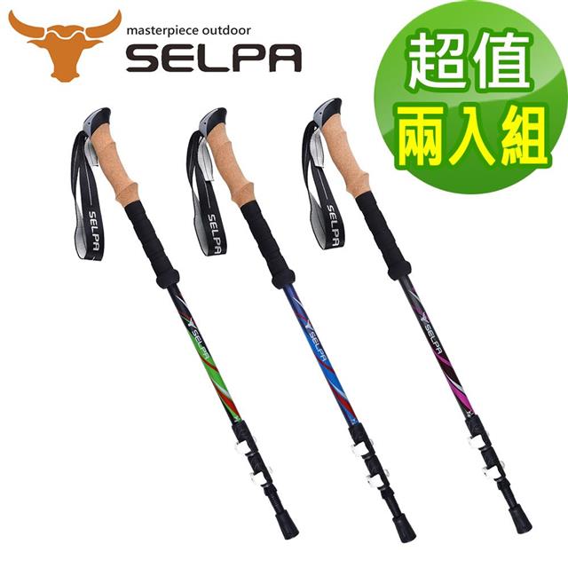 【韓國SELPA】栩瑰7075鋁合金長握柄外鎖避震登山杖/三色任選(超值兩入組)