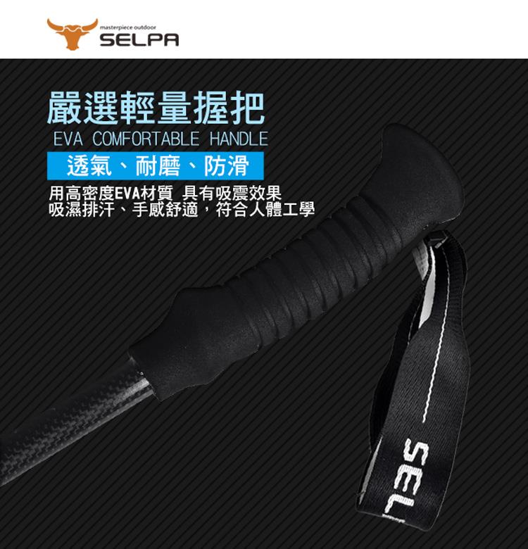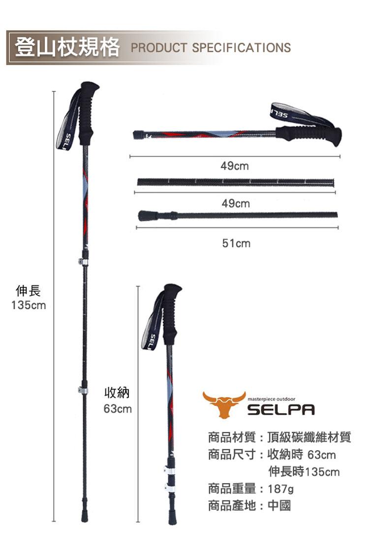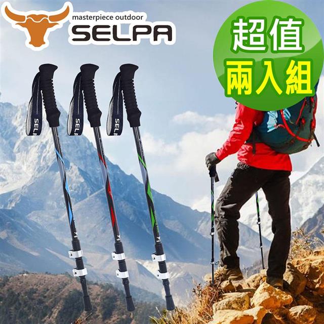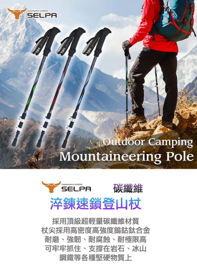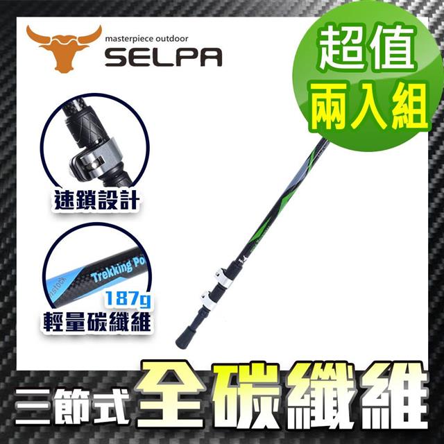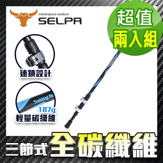 【韓國SELPA】淬鍊碳纖維三節式外鎖登山杖/三色任選(超值兩入組)
