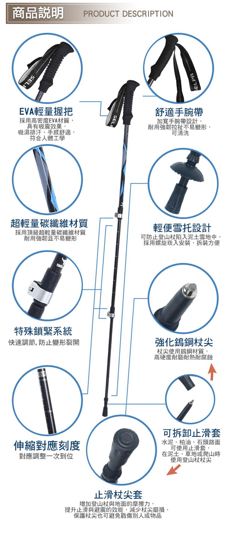 耐磨、強韌、耐腐蝕,特殊快扣上鎖設計,高強度鎢鈷鈦合金杖尖