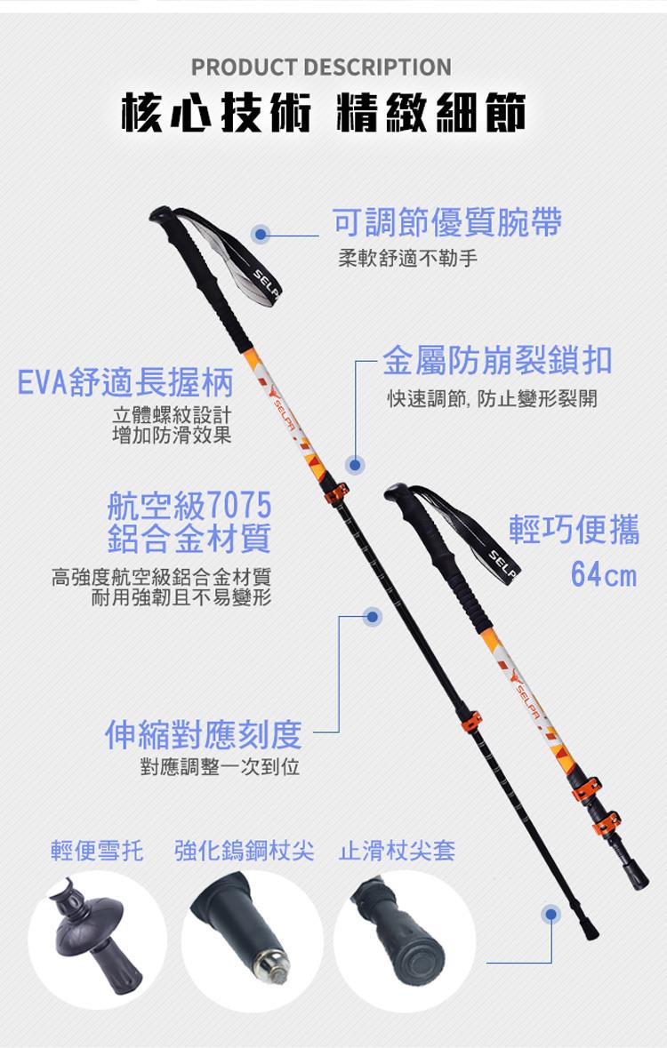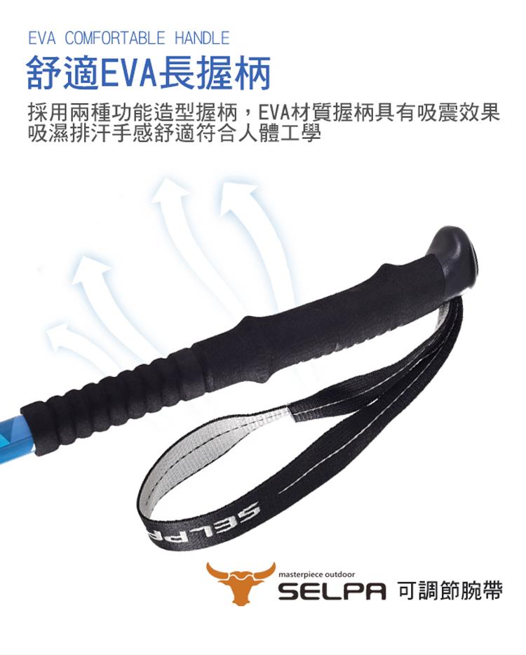 耐磨、強韌、耐腐蝕,EVA兩用長握柄設計,高強度鎢鈷鈦合金杖尖