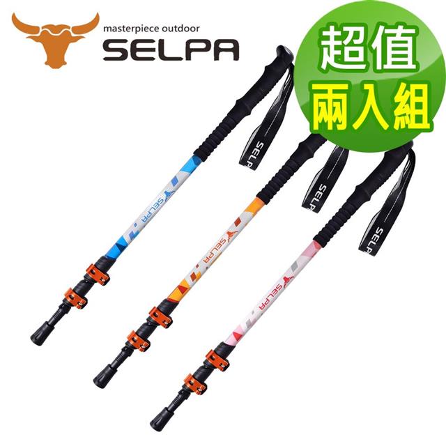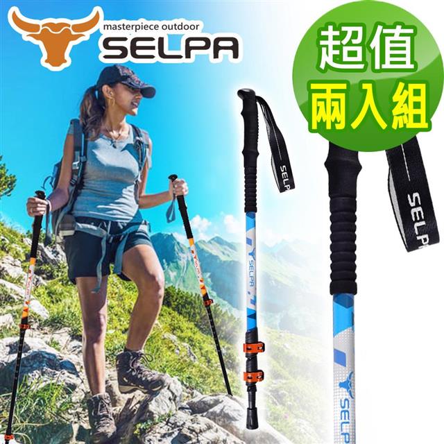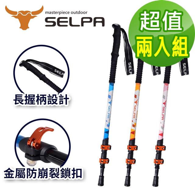 【韓國SELPA】晴澗7075鋁合金外鎖長握柄登山杖 金屬鎖扣PRO款/三色任選(超值兩入組)