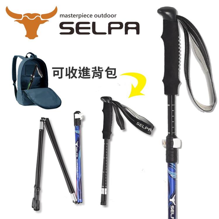 【韓國SELPA】超輕量翔凰7075鋁合金折疊四節外鎖快扣登山杖(三色任選)