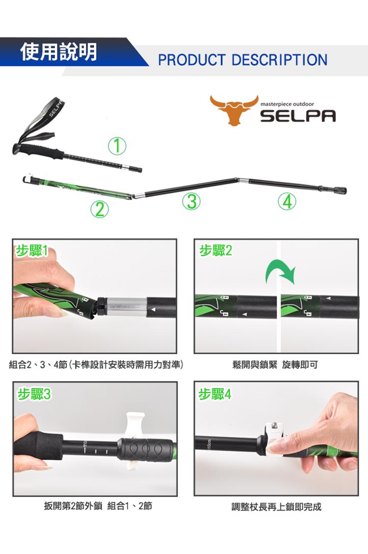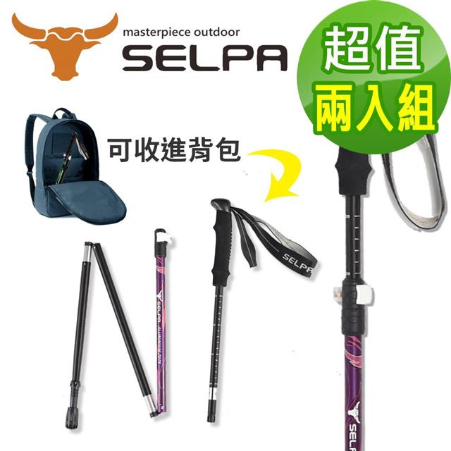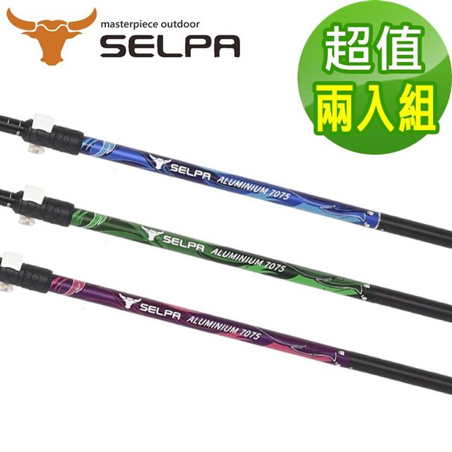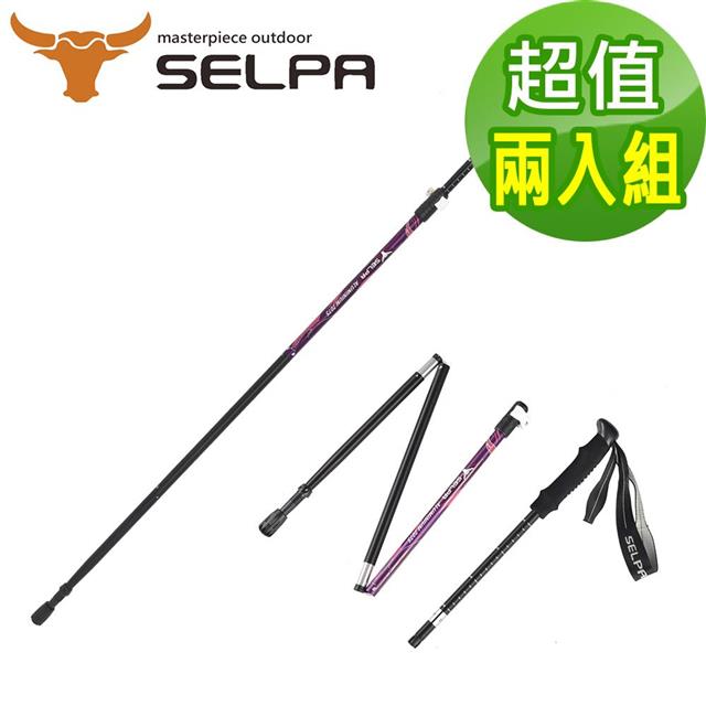 【韓國SELPA】超輕量翔凰7075鋁合金折疊四節外鎖快扣登山杖/三色任選(超值兩入組)