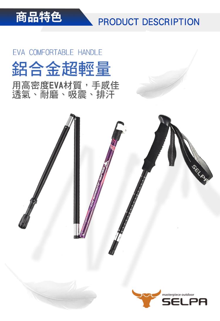 航太級7075鋁合金材質,特殊快速壓扣上鎖設計,高強度鎢鈷鈦合金杖尖