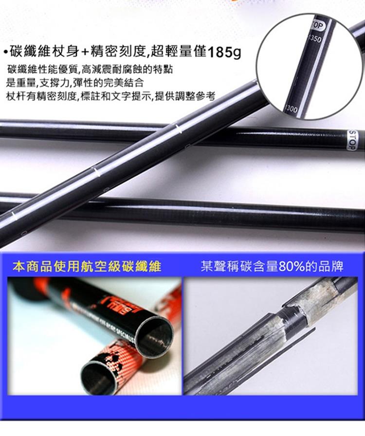 特殊伸縮設計一秒鎖緊,舒適原木握把,附馬蹄型杖尖套