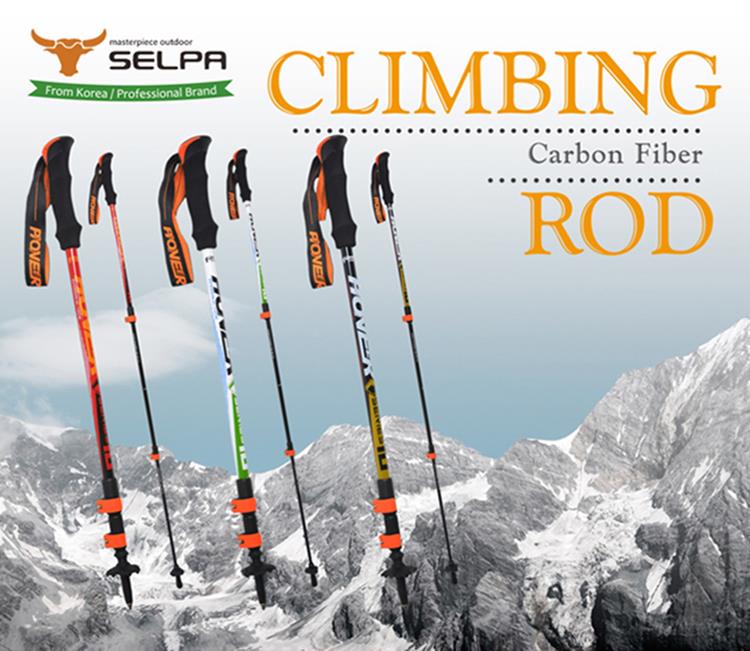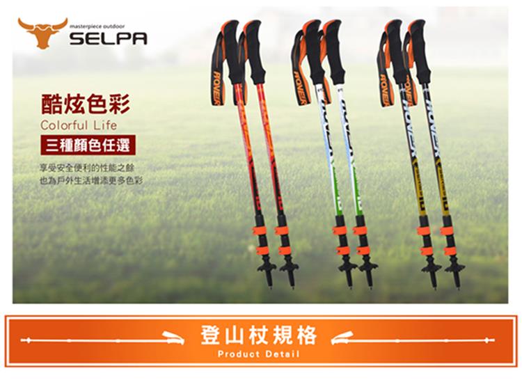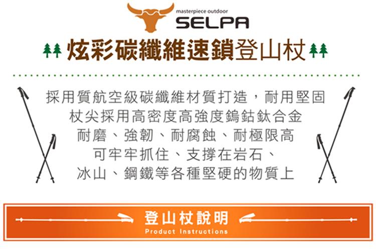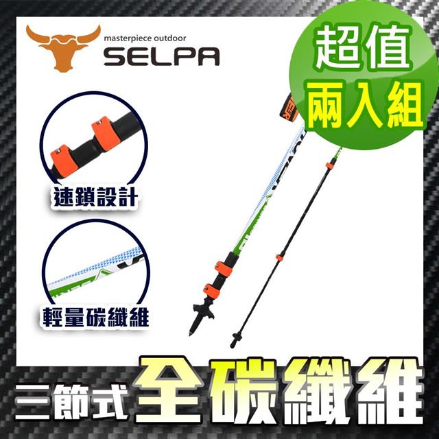 【韓國SELPA】開拓者特殊鎖點三節式超輕碳纖維炫彩登山杖/三色任選(超值兩入組)
