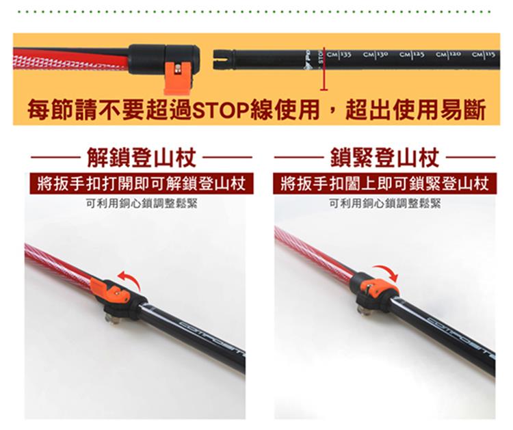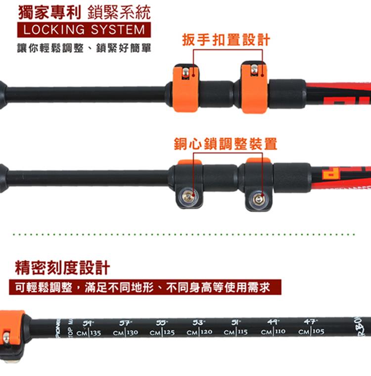 超輕量碳纖維材質,特殊伸縮設計一秒鎖緊