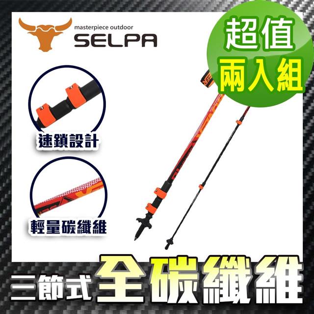 【韓國SELPA】開拓者特殊鎖點三節式超輕碳纖維炫彩登山杖/三色任選(超值兩入組)