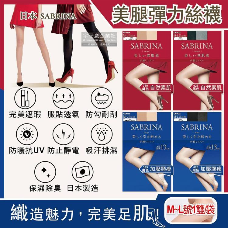日本GUNZE SABRINA-彈力防勾線修身顯瘦美腿超薄內搭絲襪ML號1雙/袋(裸感遮瑕吸濕排汗褲襪)