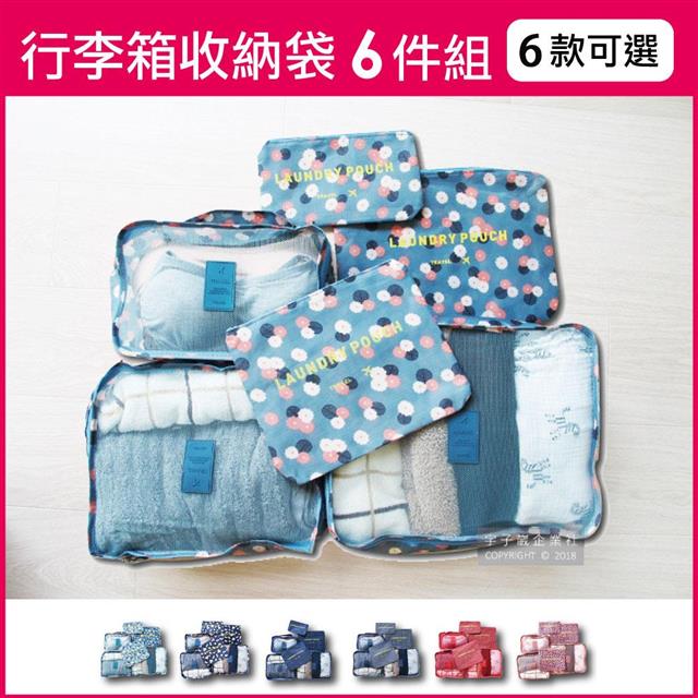生活良品-韓版加厚防水行李箱旅行衣物分類收納袋印花款6件組