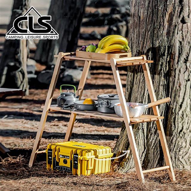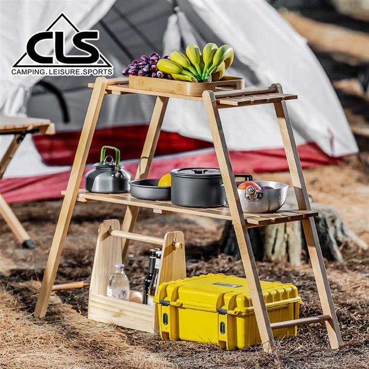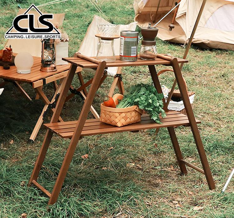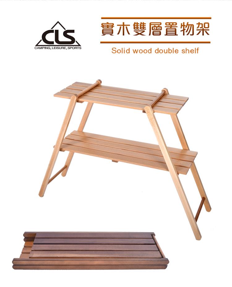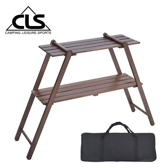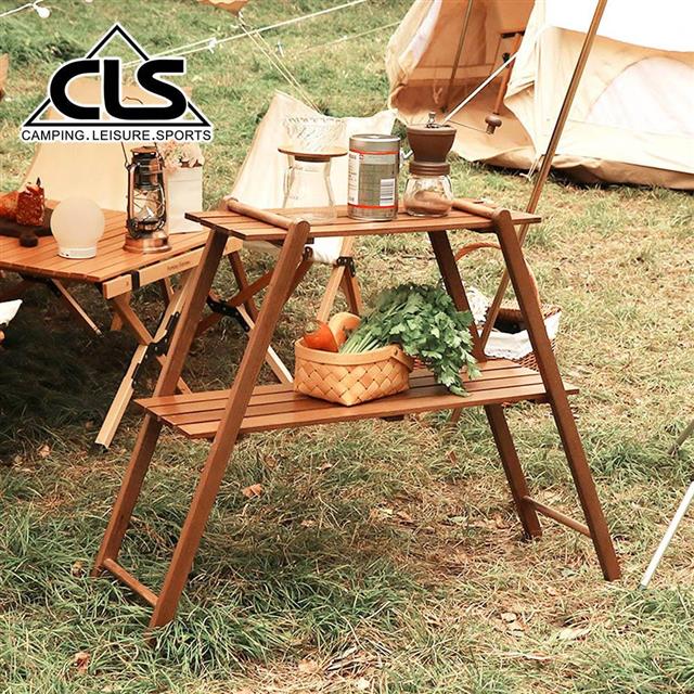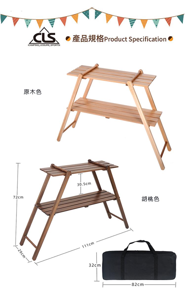 【韓國CLS】實木雙層置物架 贈收納袋/掛架/曬物/露營/野炊/登山(兩色任選)
