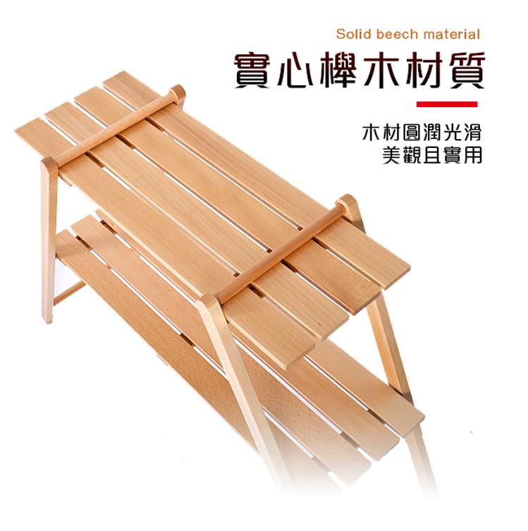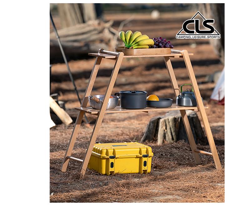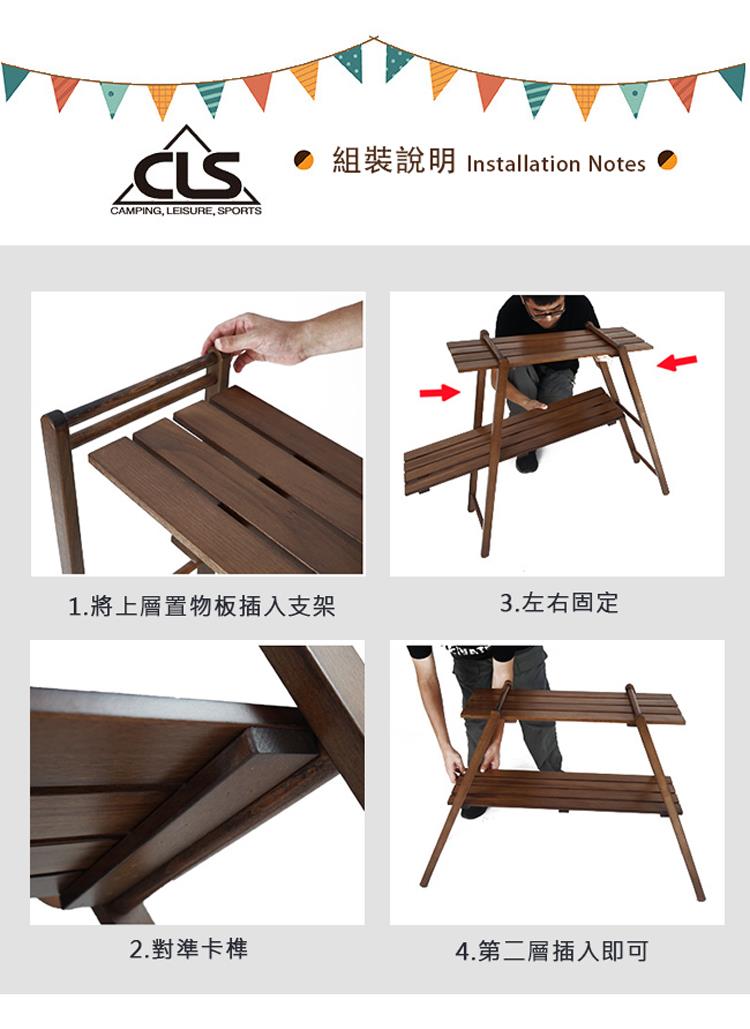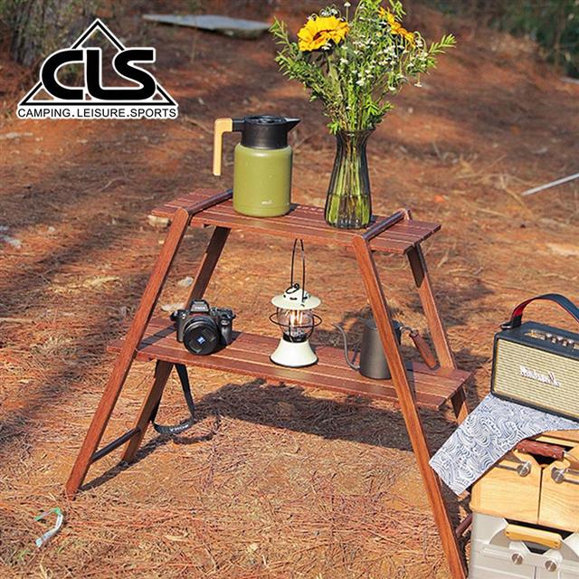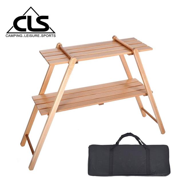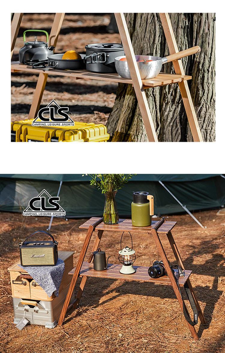 【韓國CLS】實木雙層置物架 贈收納袋/掛架/曬物/露營/野炊/登山(兩色任選)