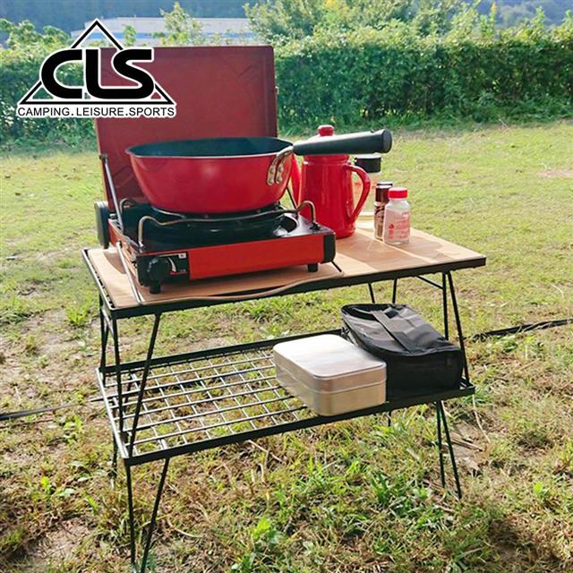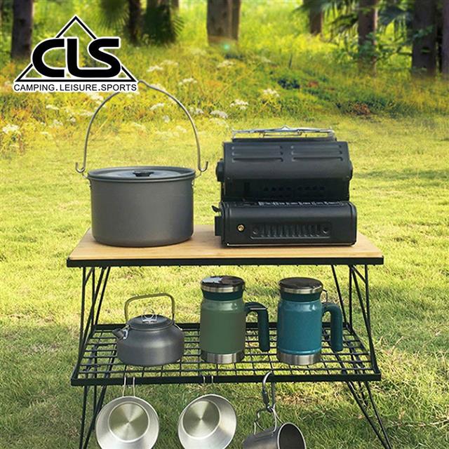 【韓國CLS】折疊收納露營耐熱網桌 木質桌面升級款 附收納袋 /洞洞桌/烤肉桌(雙層超值組)