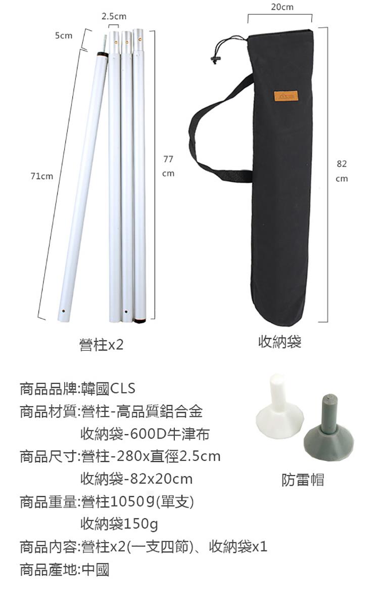【韓國CLS】鋁合金天幕營柱大型支撐桿280cm 兩支一組 加贈收納袋