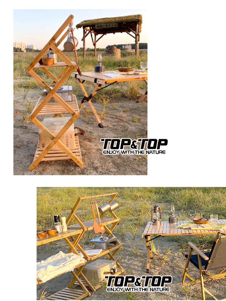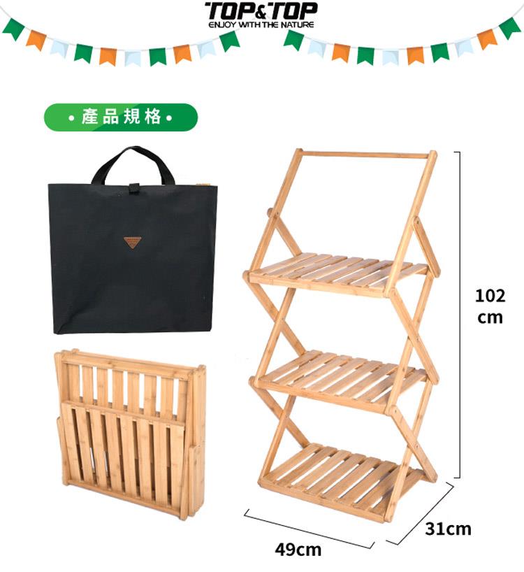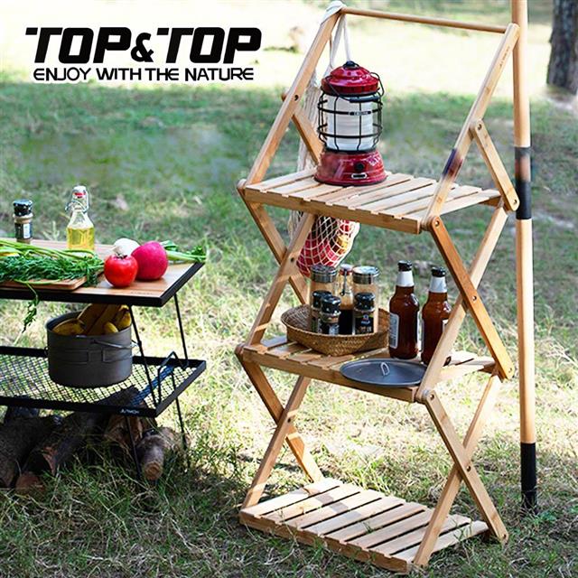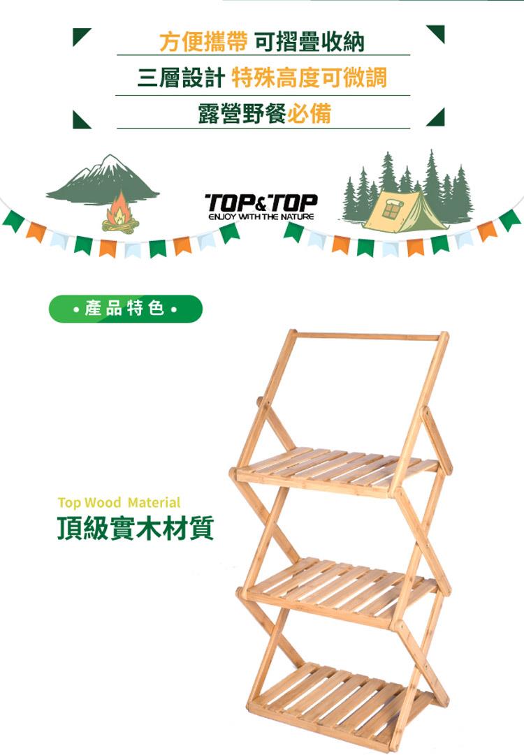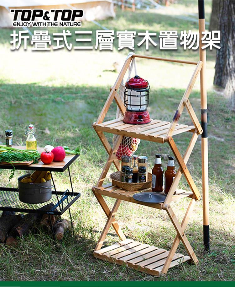 【韓國TOP&TOP】折疊式三層實木置物架 贈收納袋/木架/露營架/木紋