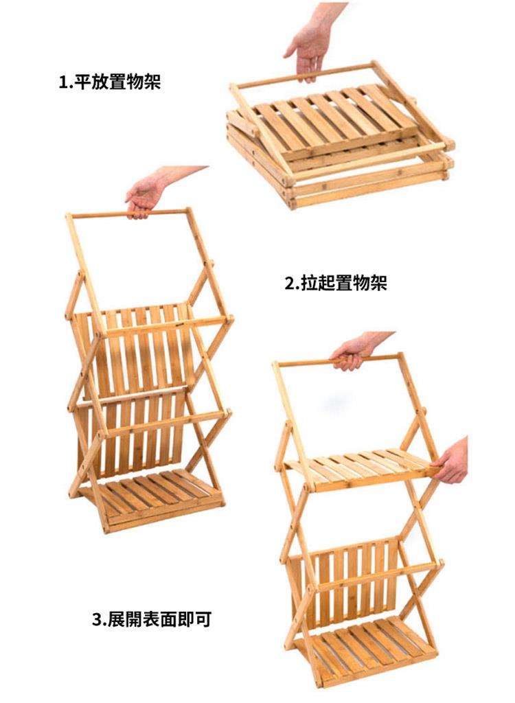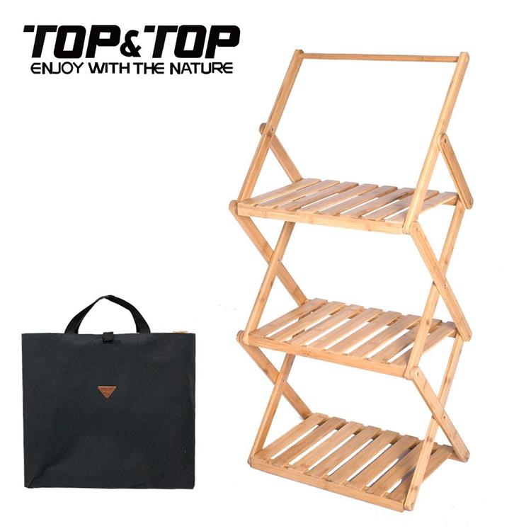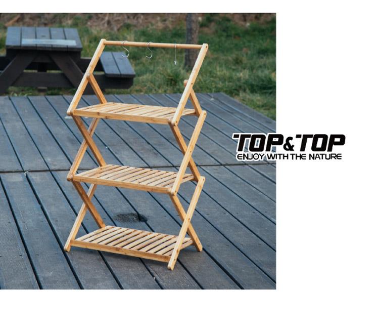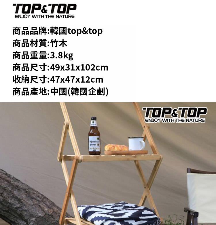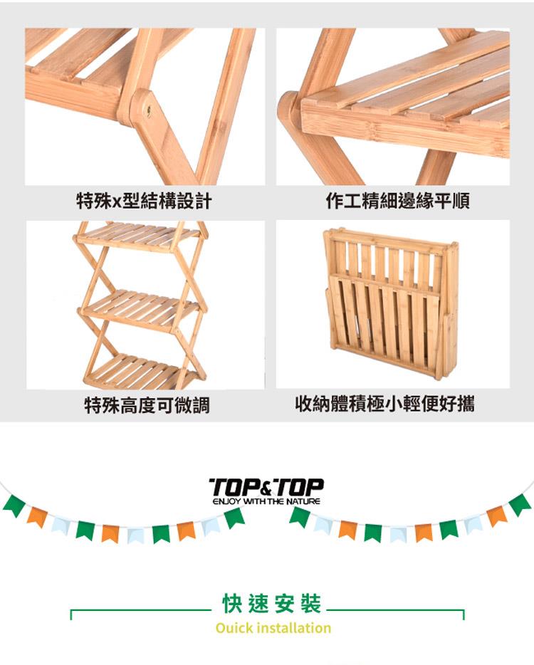 【韓國TOP&TOP】折疊式三層實木置物架 贈收納袋/木架/露營架/木紋