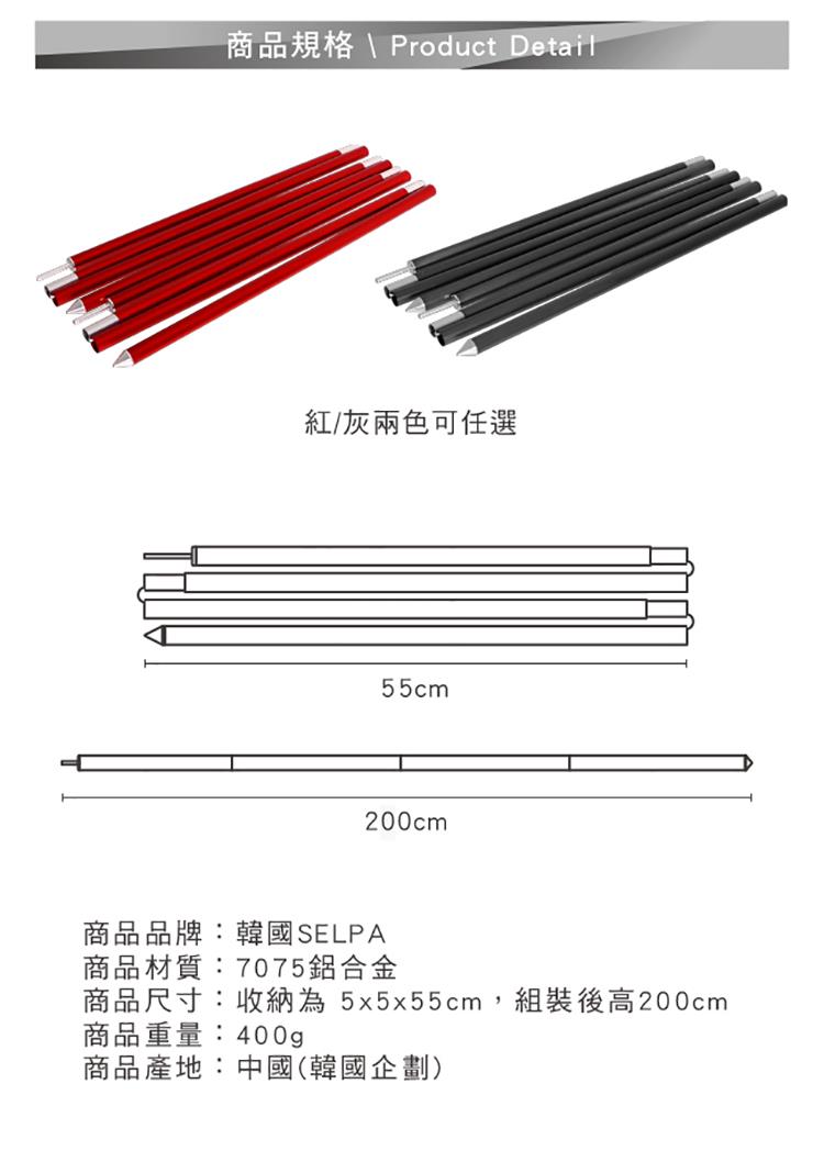 【韓國SELPA】200cm四節鋁合金營柱兩入組(兩色任選)