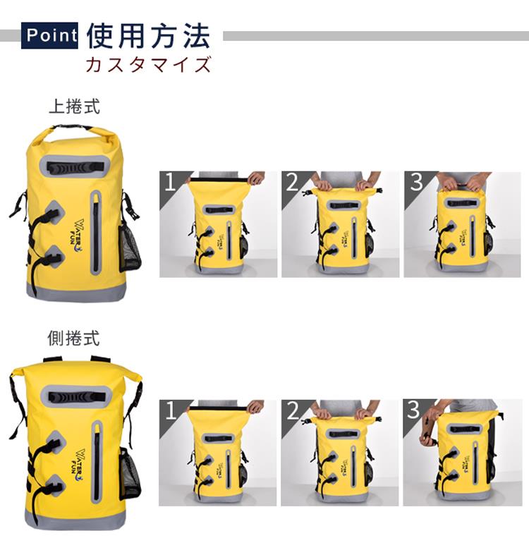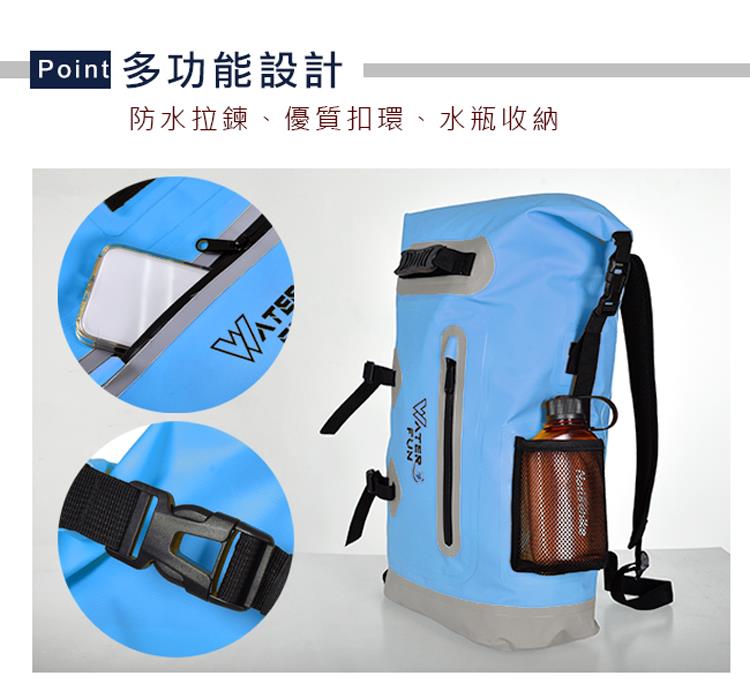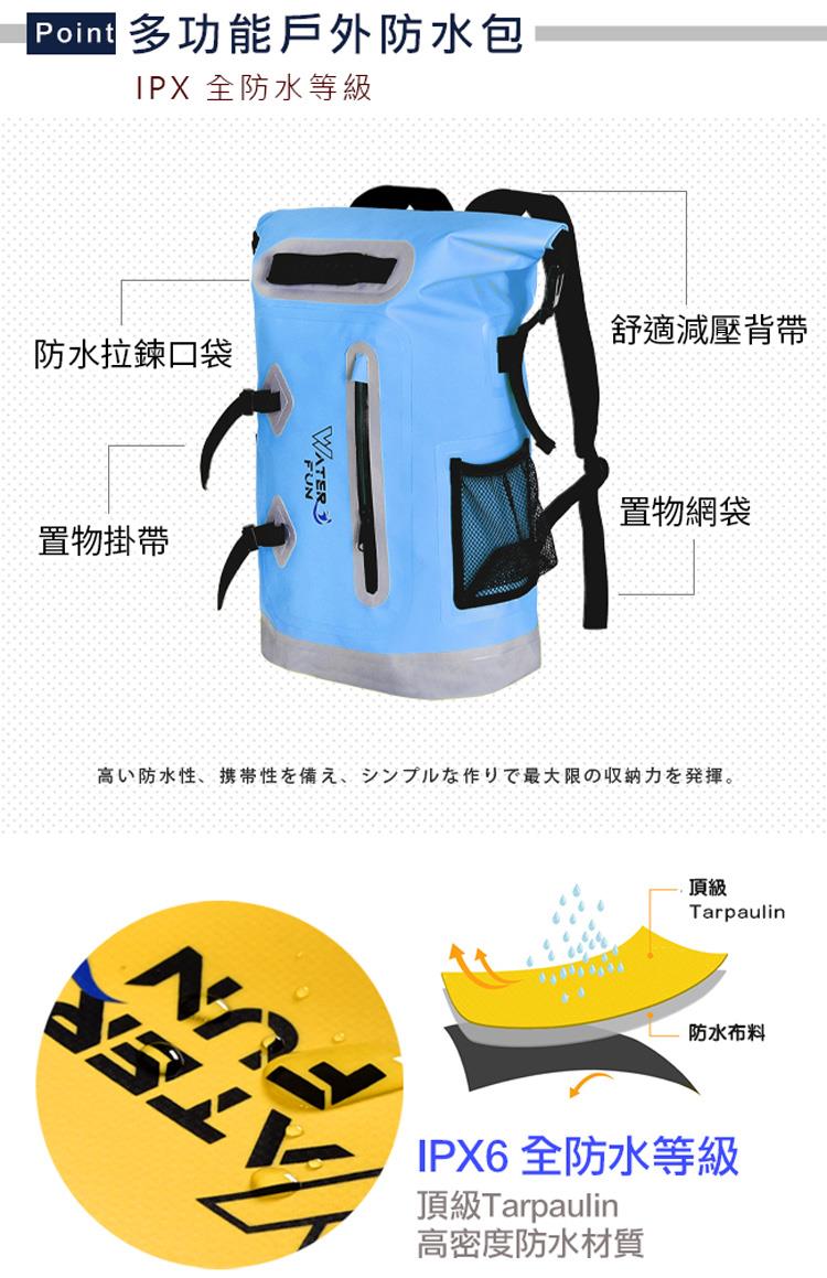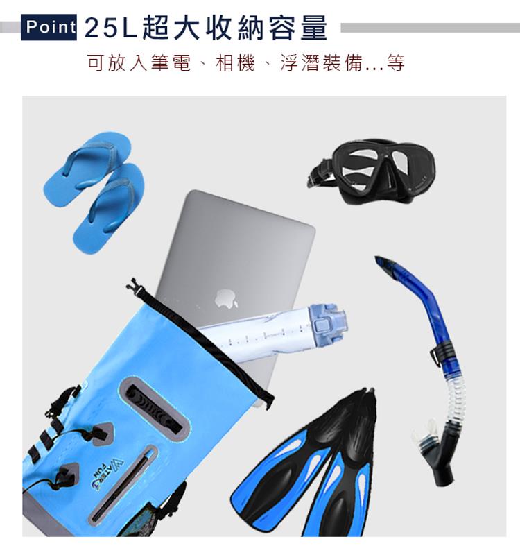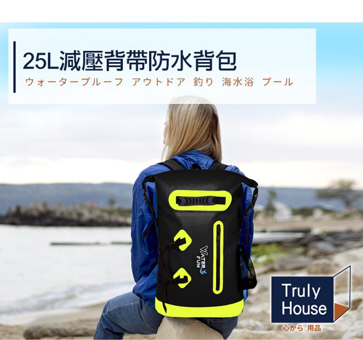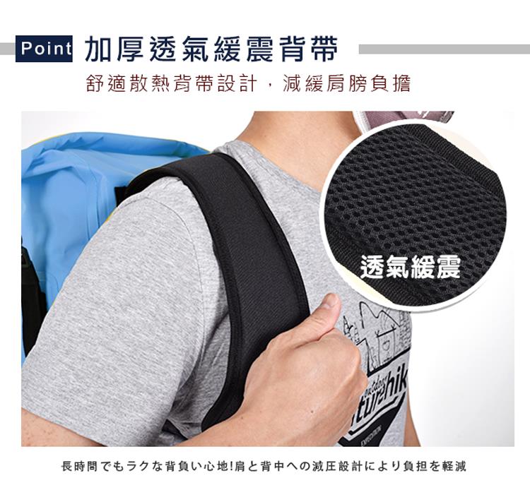 舒適透氣緩震背帶,頂級IPX6全防水等級,25L大容量收納各式用品