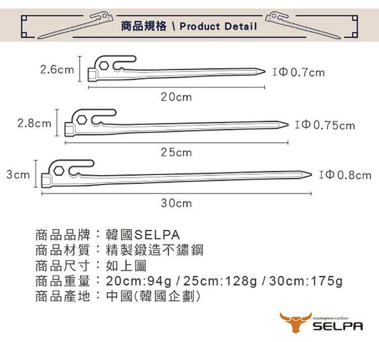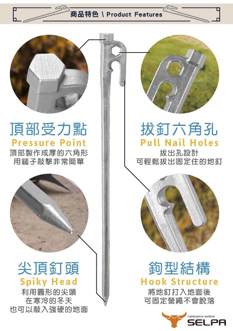 【韓國SELPA】頂級不鏽鋼六角營釘/帳篷釘/露營/登山(30cm/四入)