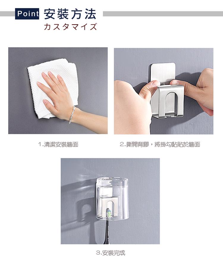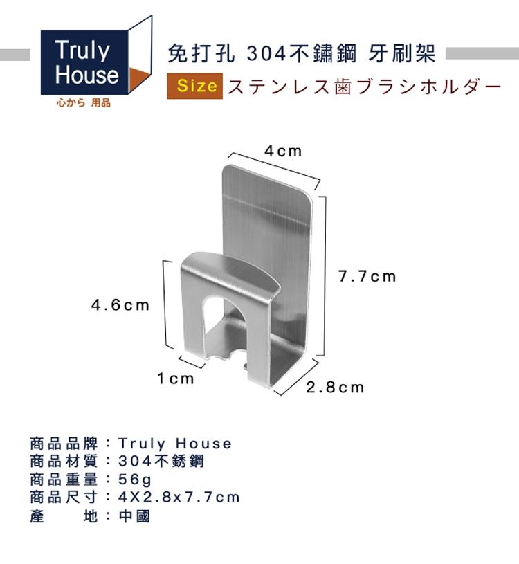 【Truly House】免打孔304不鏽鋼牙刷架 杯架/無痕貼/無痕掛勾(單入)