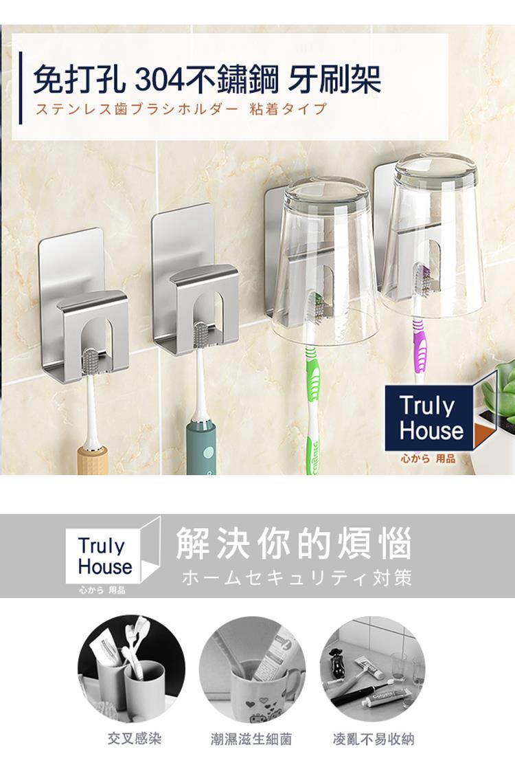 【Truly House】免打孔304不鏽鋼牙刷架 杯架/無痕貼/無痕掛勾(超值六入組)