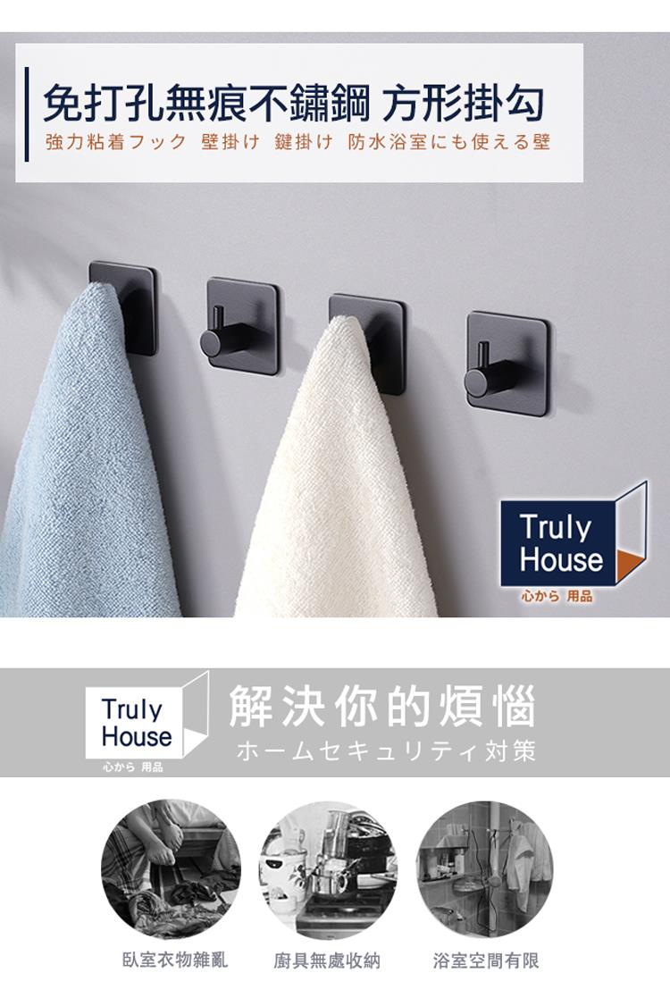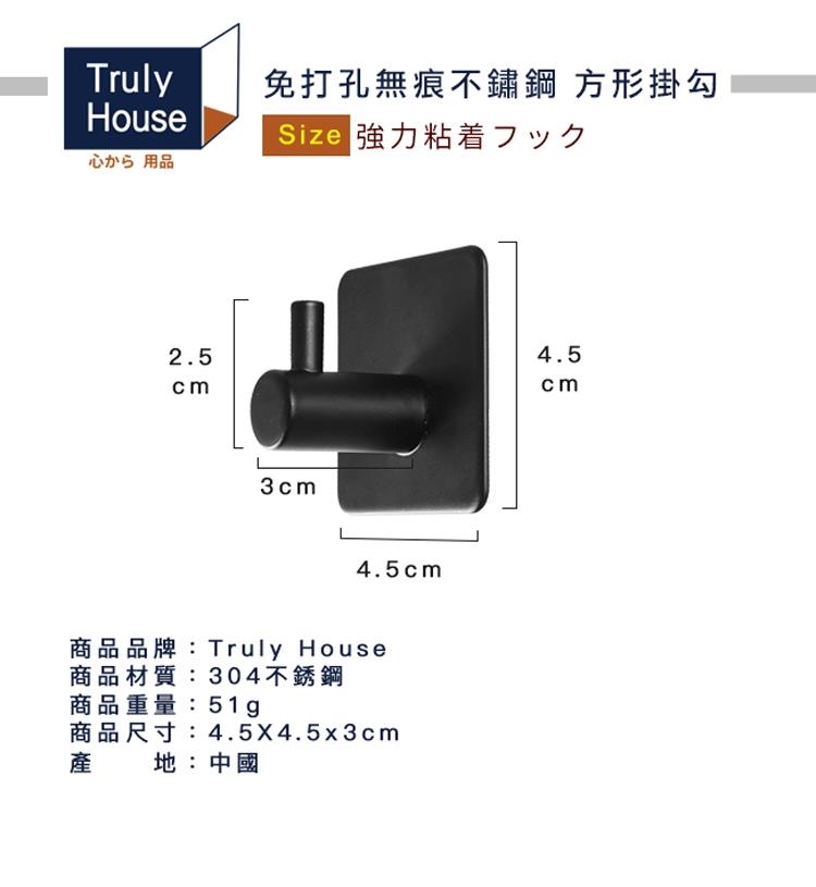 【Truly House】免打孔304不鏽鋼方形掛勾 黑色限定款/無痕貼/無痕掛勾(超值兩入組)