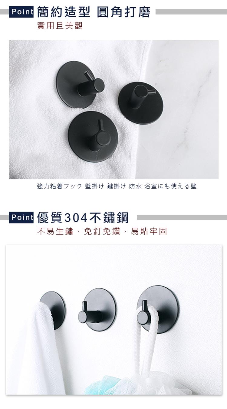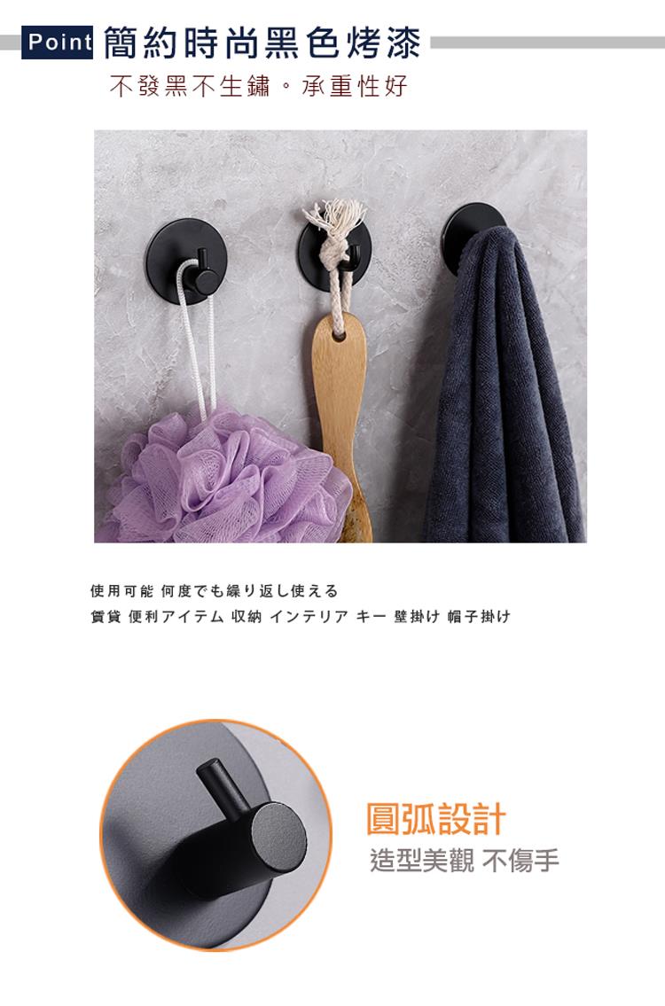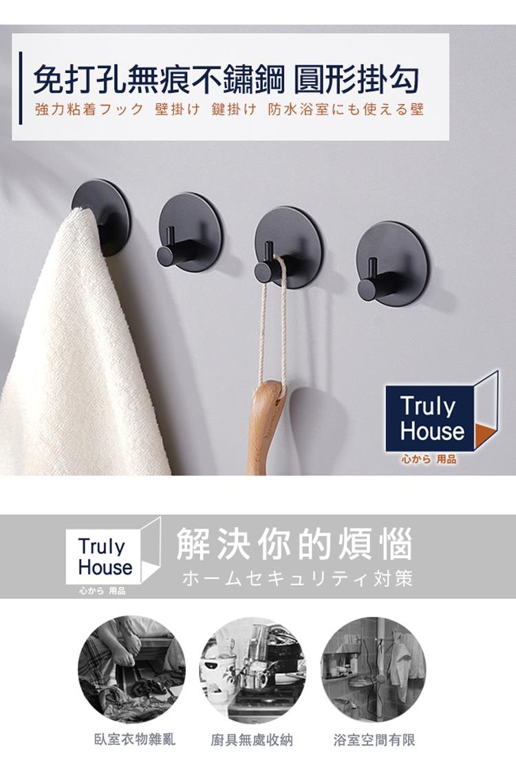 【Truly House】免打孔304不鏽鋼圓形掛勾 黑色限定款/無痕貼/無痕掛勾(超值四入組)