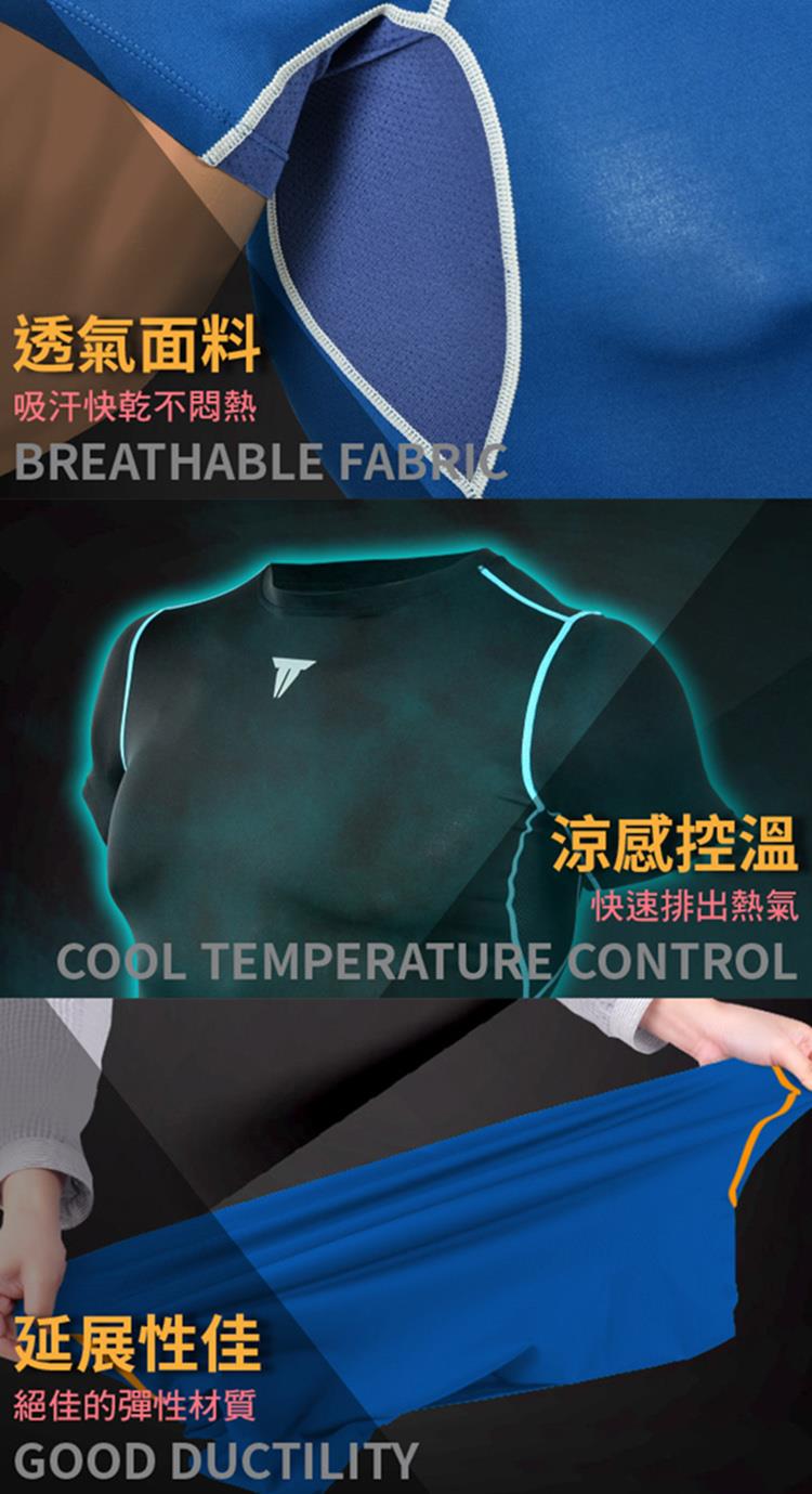 超舒服彈性布料,冰涼透氣抗UV,腋下部位散熱拼接網布設計