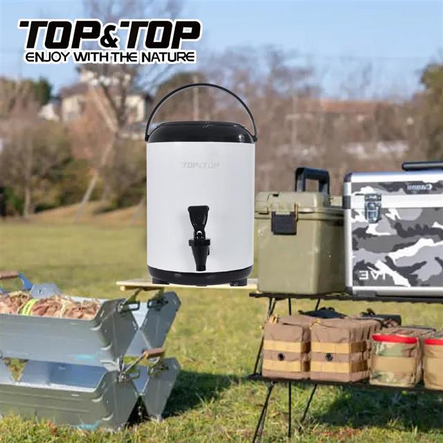 【韓國TOP&TOP】304不鏽鋼保溫保冷茶桶 加大款 8L/茶水桶/茶桶/飲水桶/露營/野炊/野餐(兩色任選)