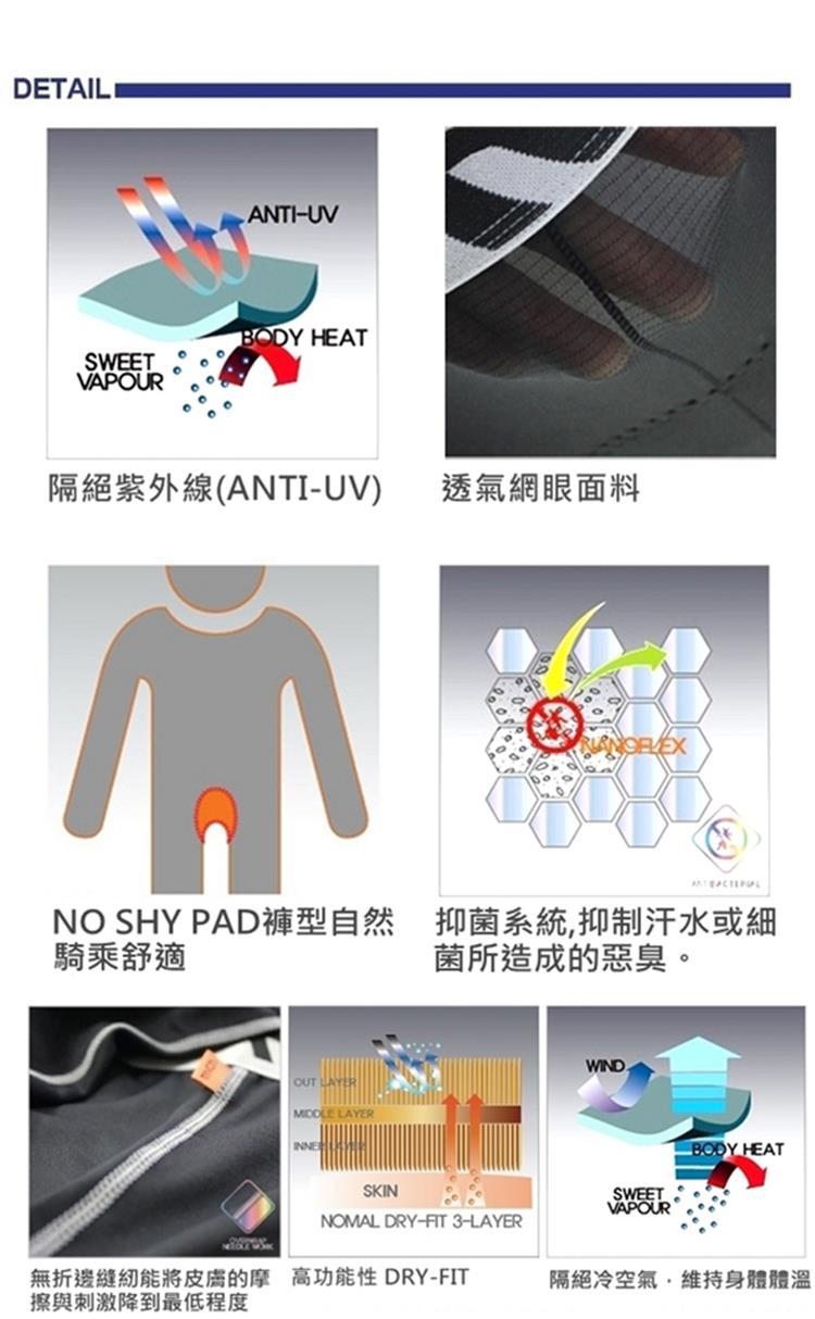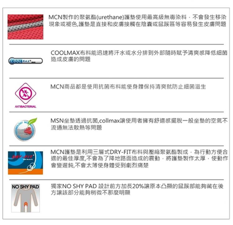 褲型自然 騎乘舒適,特殊的抑菌系統 抑制汗水與細菌異味