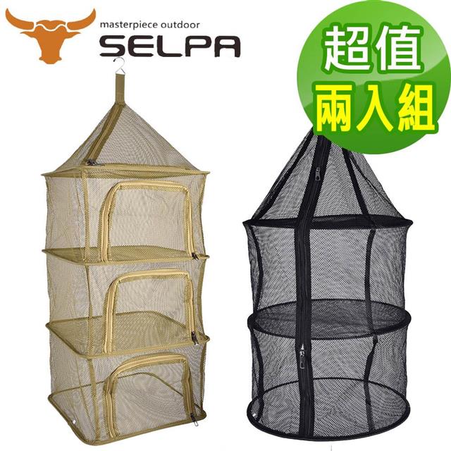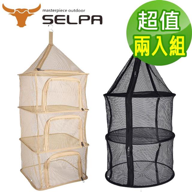 【韓國SELPA】多功能曬物籃/曬碗/曬衣/戶外/露營/超值兩入組(圓型+方型)