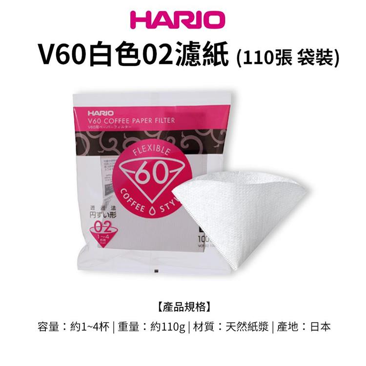 【HARIO官方】日本製V60錐形白色漂白01/02咖啡濾紙110張(適用V形濾杯)