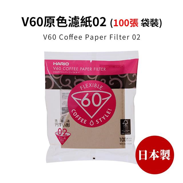 【HARIO】日本製V60錐形原色無漂白02咖啡濾紙100張(適用V形濾杯)
