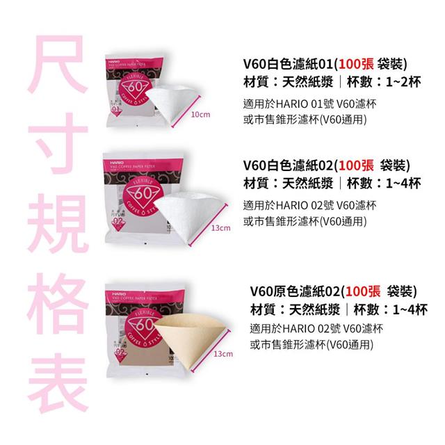 名稱: 【HARIO官方】日本製V60錐形原色無漂白02咖啡濾紙100張(適用V形濾杯)