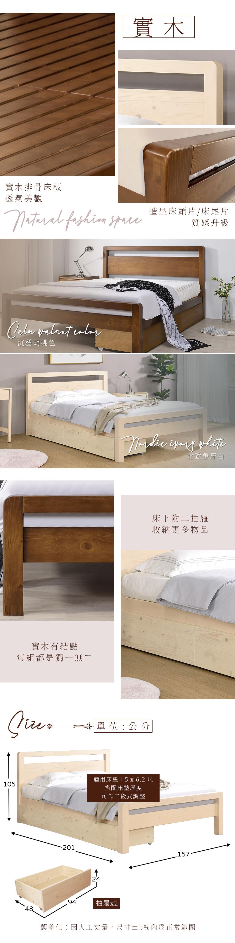 整體配件:5尺床架 x 1+床下抽屜x2 (不含床墊)
