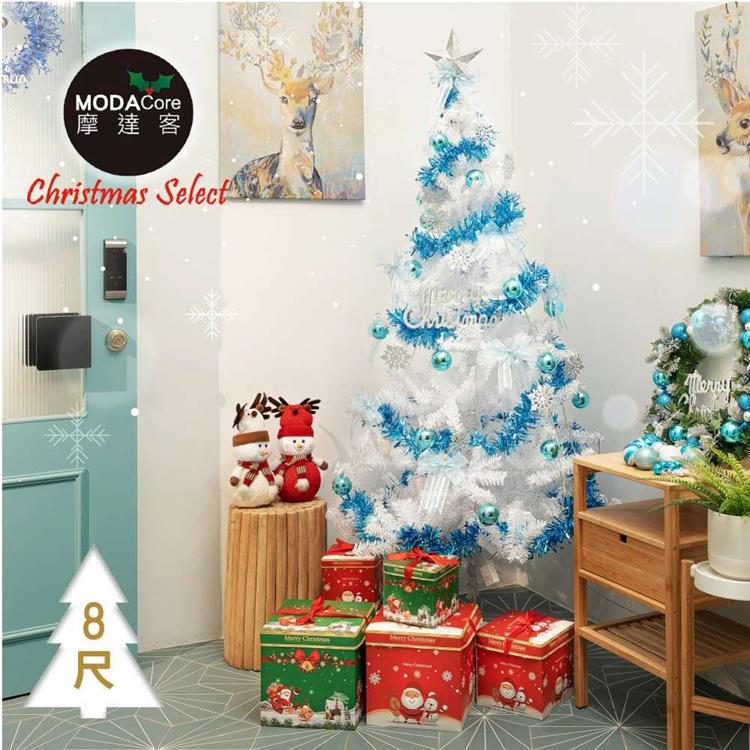 摩達客耶誕-台灣製 8尺/8呎(240cm)特仕幸福型裝飾白色聖誕樹+冰雪銀藍系全套飾品配件不含燈/本島免運費