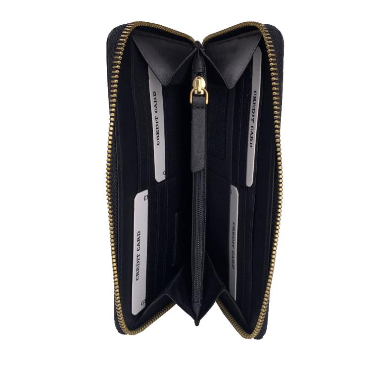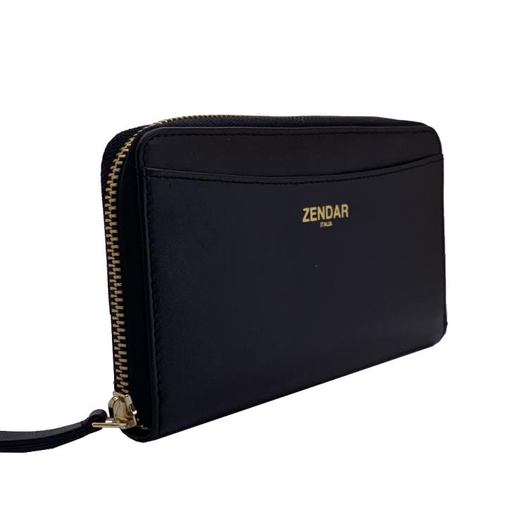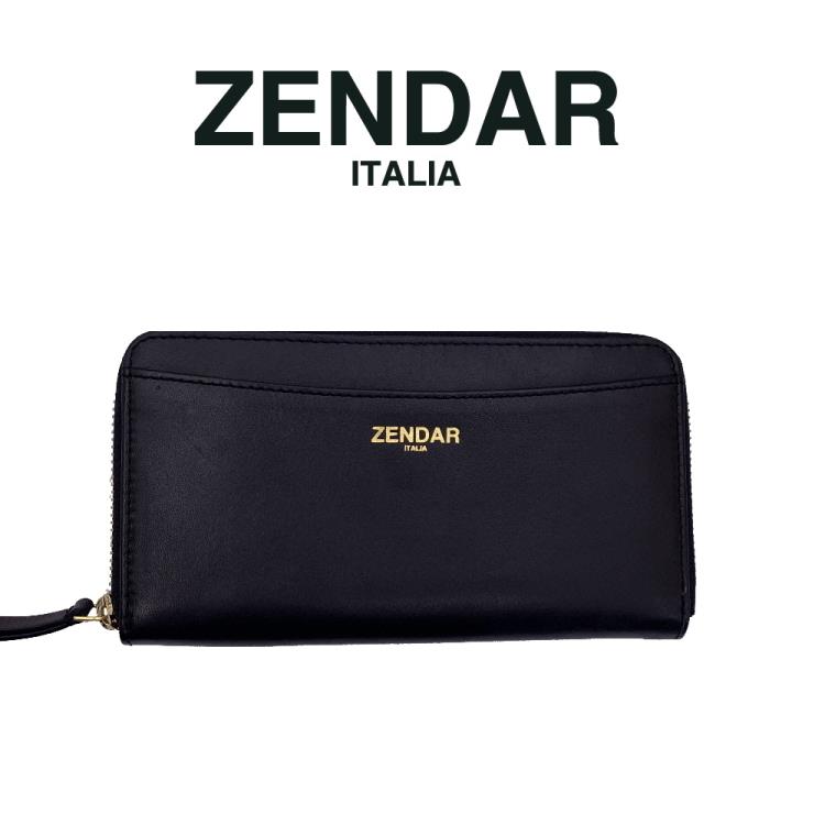 【ZENDAR】義大利精品 頂級NAPPA小牛皮拉鍊長夾 瑪蒂娜系列 (黑色)