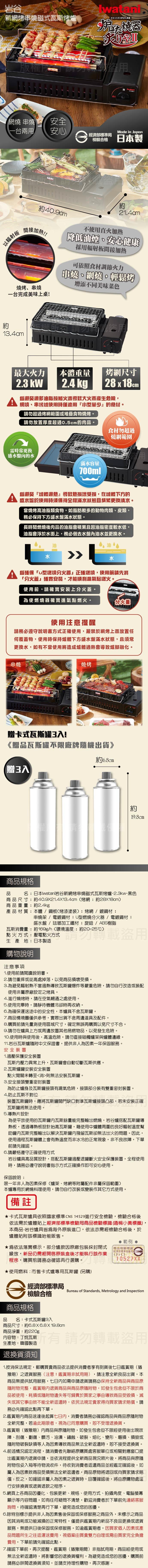 【Iwatani岩谷】新網烤串燒磁式瓦斯烤爐2.3kw-黑色-搭贈3入瓦斯罐 (CB-ABR-2+瓦斯罐3入)