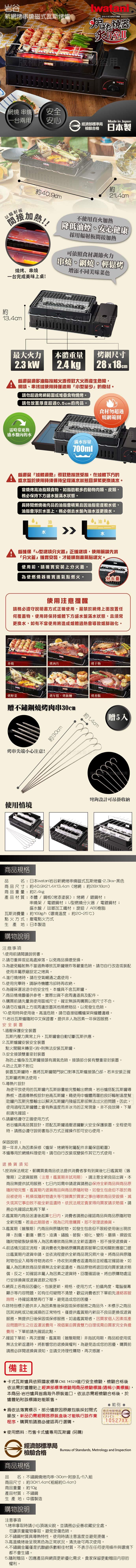 ★經濟部檢驗合格,日本製品質優良 ★2.4kg輕巧好攜帶、收納不占空間 ★輻射板加熱設計,食物受熱更均勻 ★居家戶外,網燒、串烤一次滿足