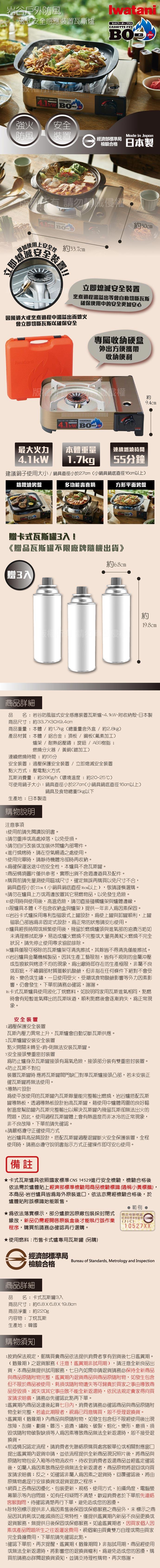 ★採用日本獨家專利磁式裝置,日本製品質優良 ★附外出攜帶手提保護殼,收納便利 ★新增熄滅後自動切斷瓦斯功能 ★新款爐架防止鍋具傾斜設計