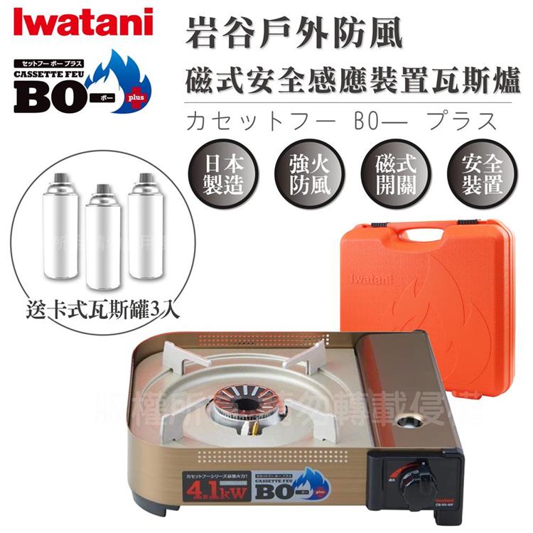 【Iwatani岩谷】防風磁式安全感應裝置瓦斯爐-新4.1kw-附收納殼搭贈3入瓦斯罐 (CB-AH-41F+瓦斯罐3入)