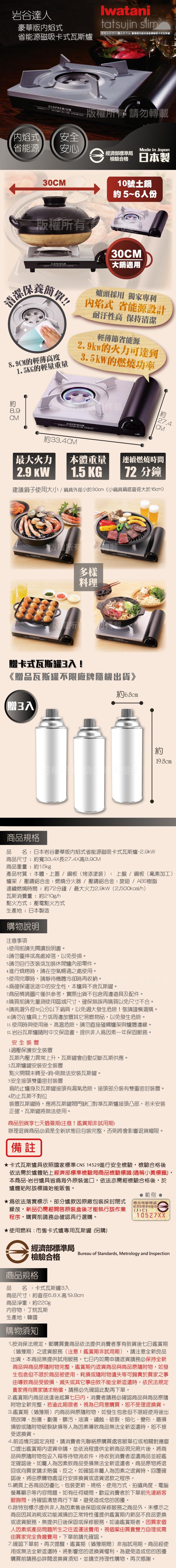 ★內焰式省能源設計 ★日本知名品牌、日本製造品質優良 ★表面材質耐汙性高好清潔 ★輕薄高度,輕巧重量好攜帶收納