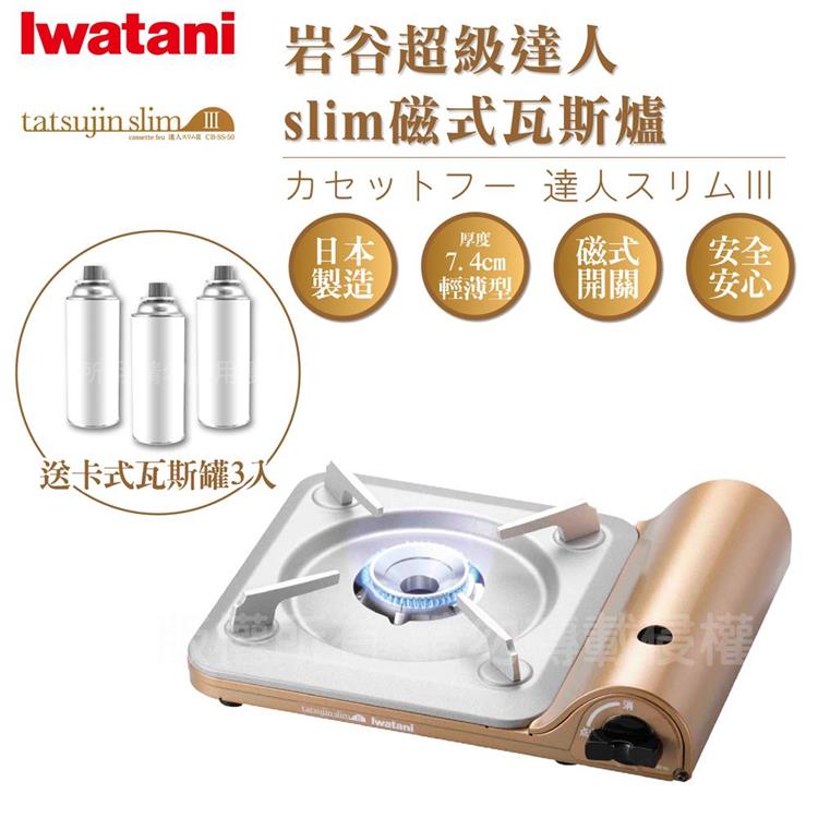 【Iwatani岩谷】達人slim磁式超薄型高效能紀念款瓦斯爐-搭贈3入瓦斯罐 (CB-SS-50+瓦斯罐3入)