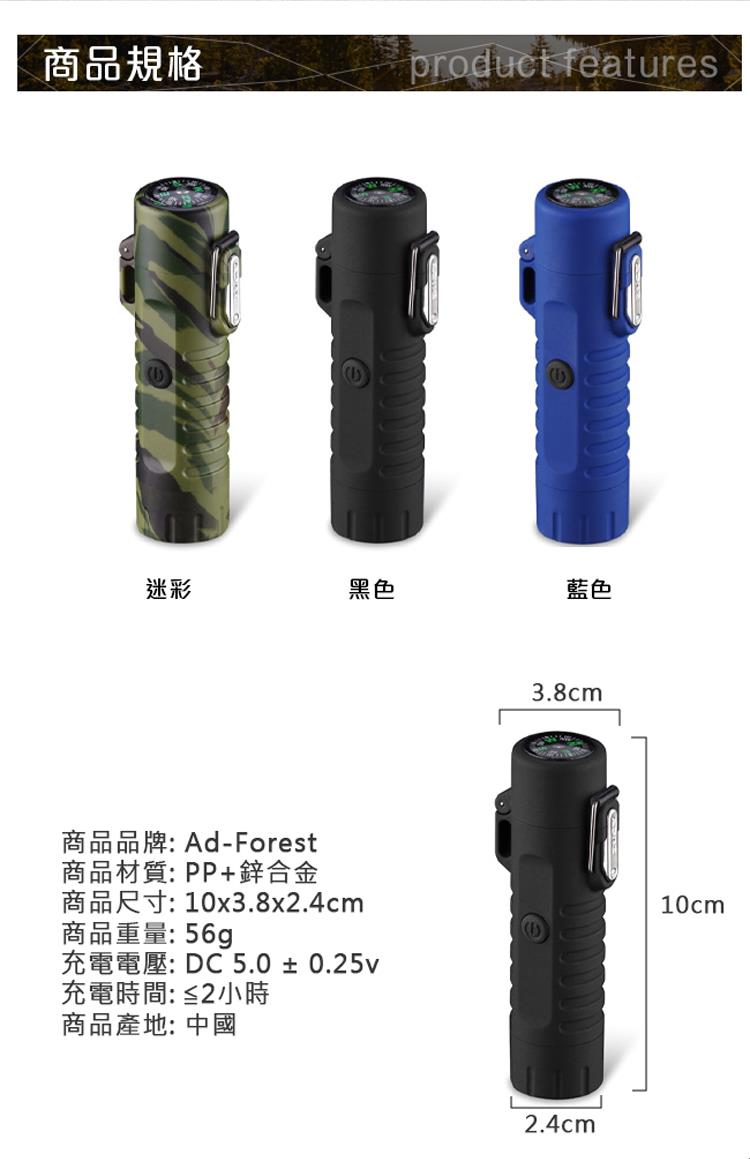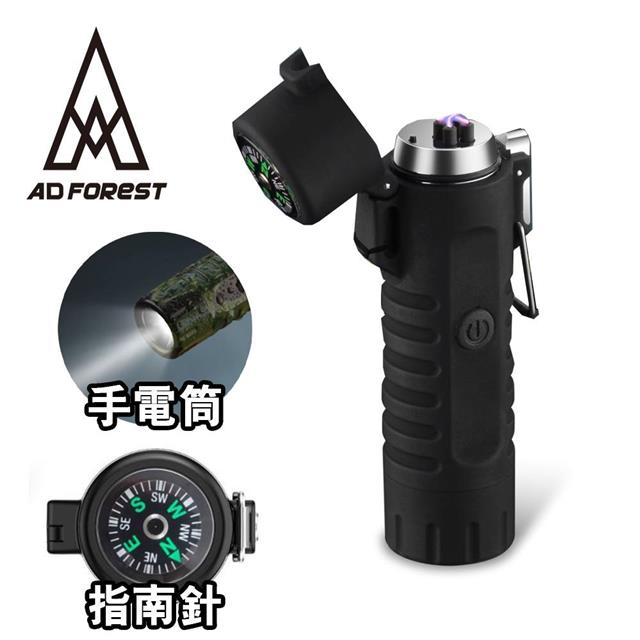 【Ad-Forest】野外求生必備 三合一多功能電弧脈衝打火機/打火機/手電筒/指南針/生火/戶外/野炊/露營(三色任選)