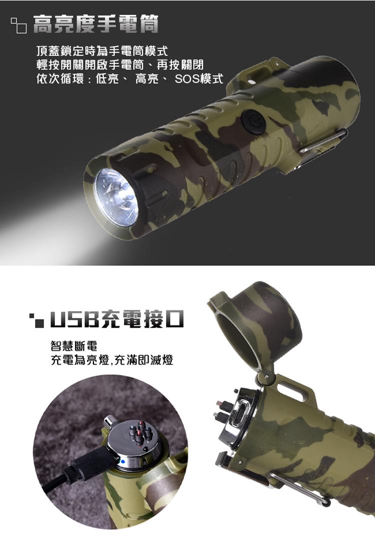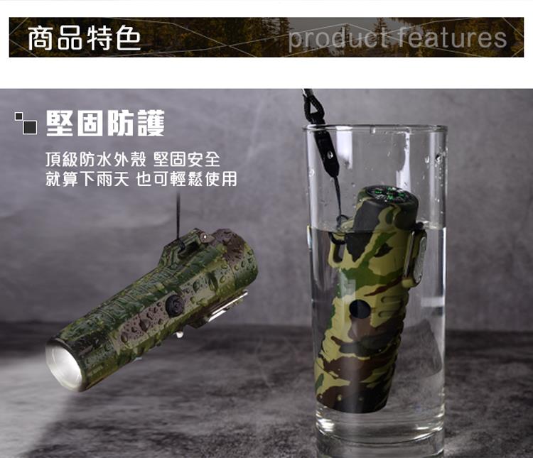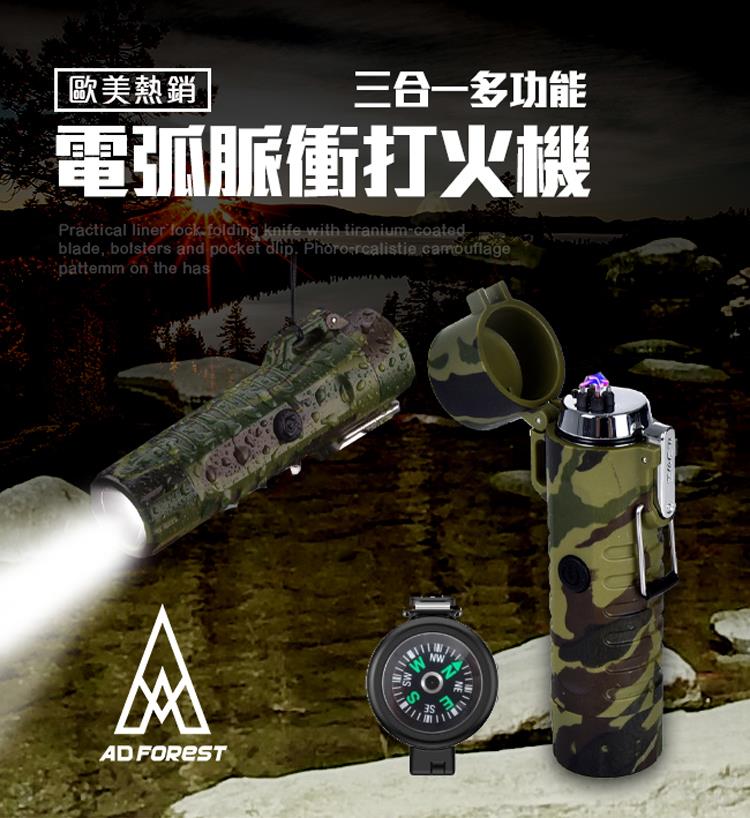 【Ad-Forest】野外求生必備 三合一多功能電弧脈衝打火機/打火機/手電筒/指南針/生火/戶外/野炊/露營(三色任選)