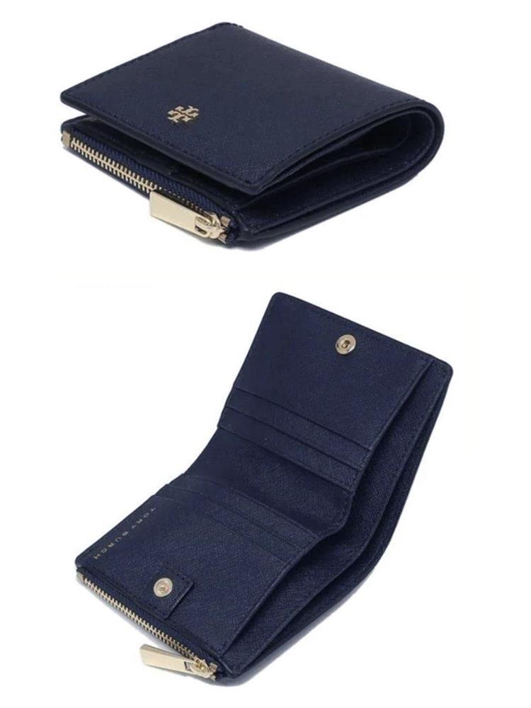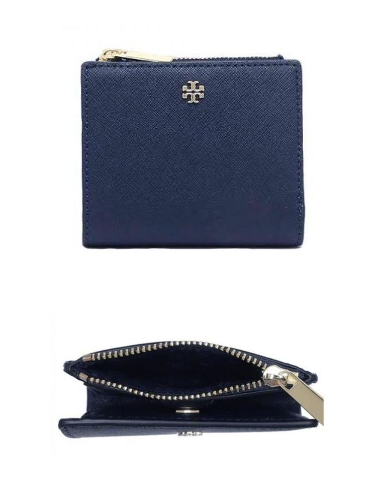 TORY BURCH 十字紋防刮皮革素面短夾-電光藍