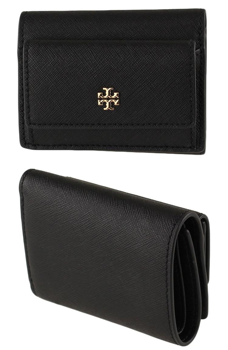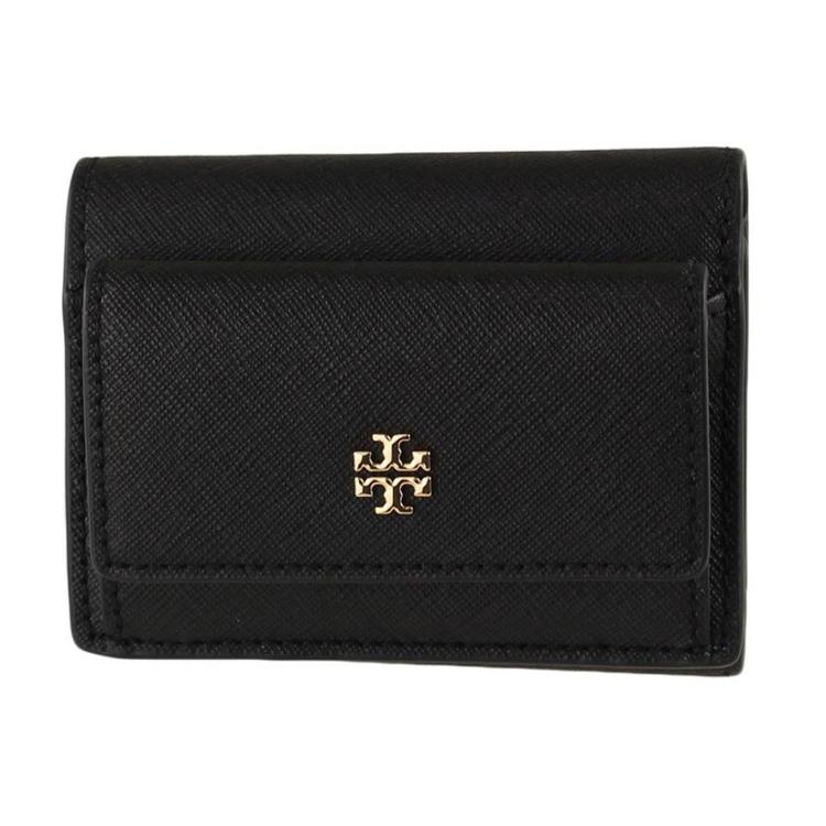 TORY BURCH 防刮皮革三折零錢袋短夾-黑