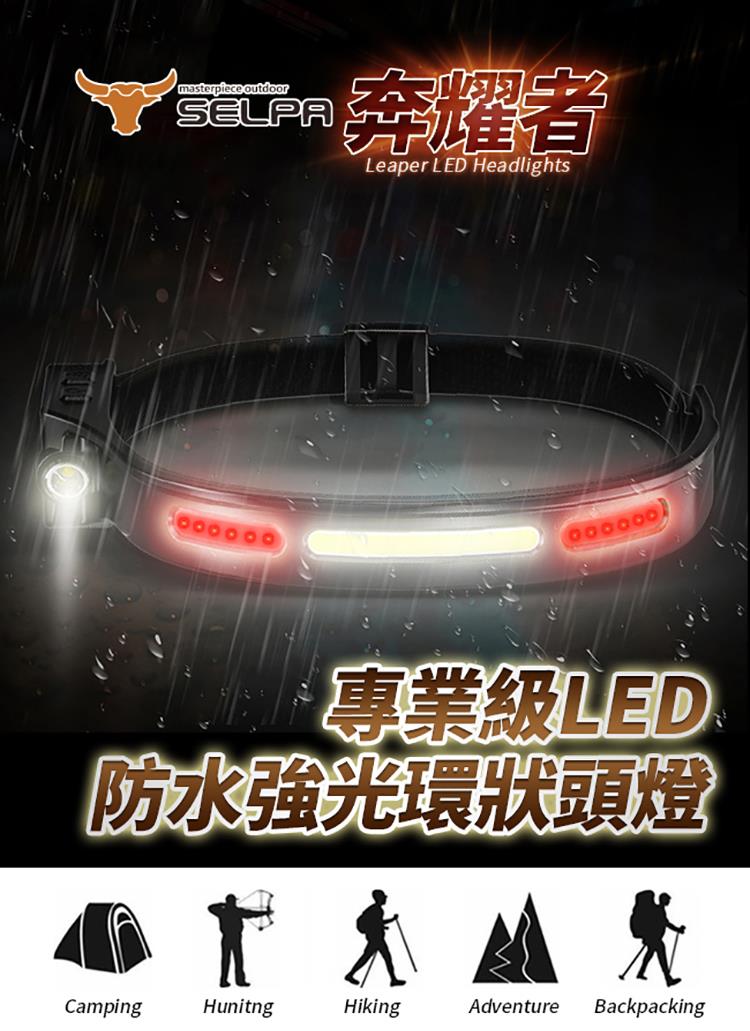 【韓國SELPA】奔耀者專業級LED防水強光感應式環狀頭燈/頭燈/LED/登山/露營(超值兩入組)