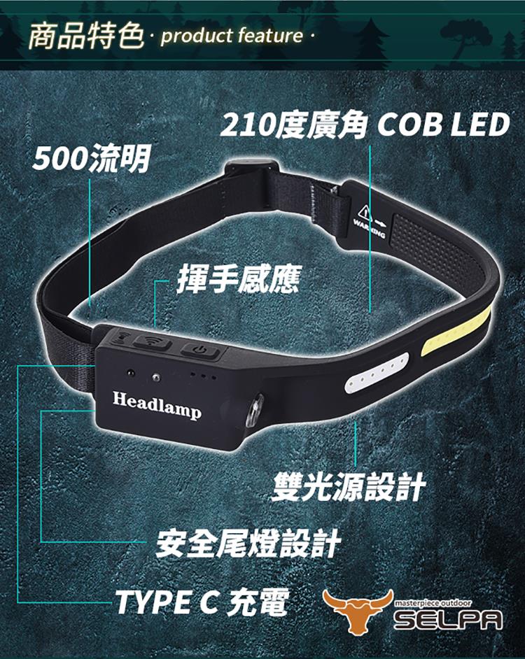 雙光源COB LED,特殊揮手開關,TYPE-C充電超高效