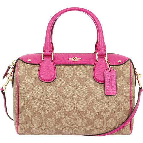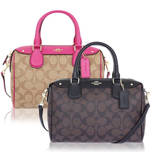coach新款兩用包,採用人氣c logo織布搭配真皮底部,另附背帶可斜背,